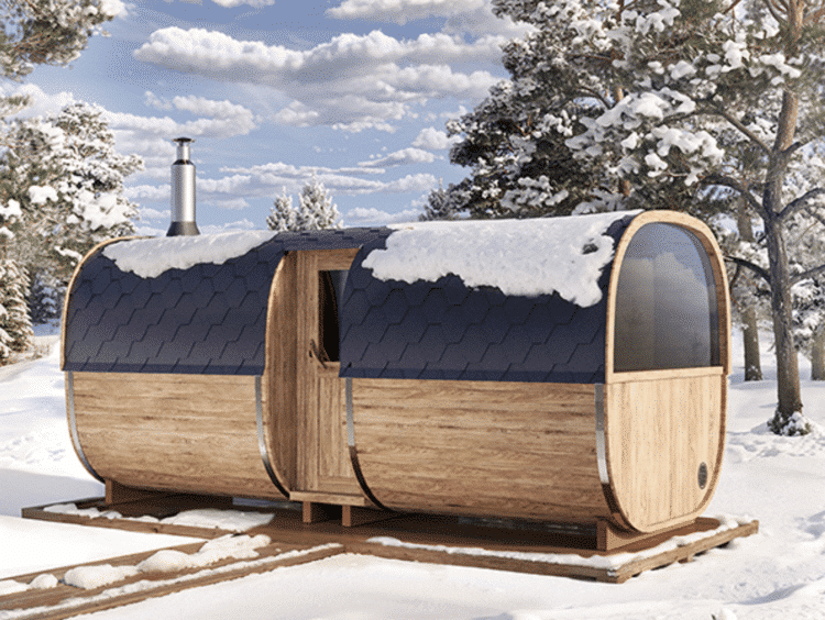 - Spruce (S28VE)/ Thermowood (S28VT) barrel (thickness 40 mm, Ø2 m, h = 2,1 m – without chimney)