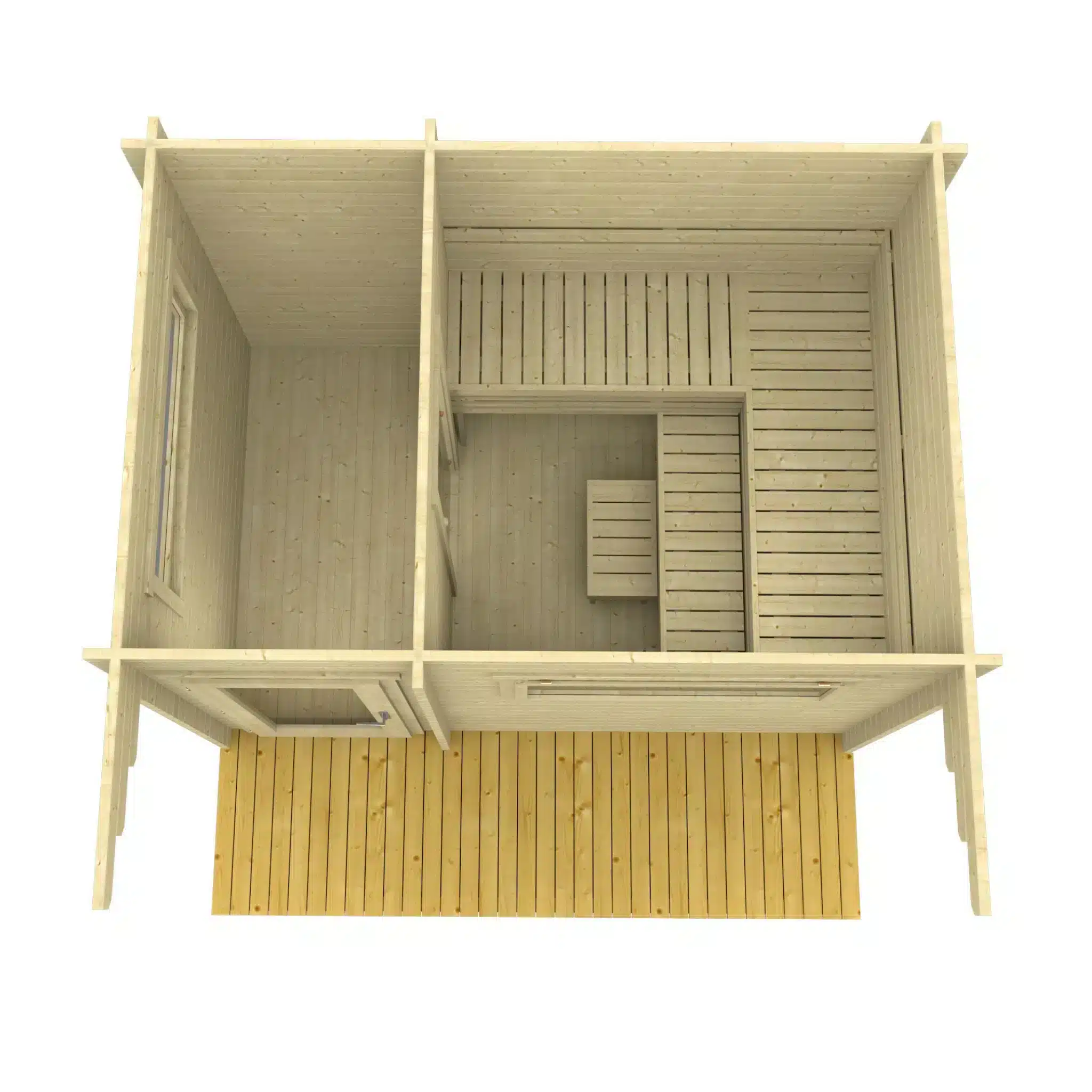 Upgrade your backyard with the Ahti XL sauna – a spacious and stylish sauna with dimensions of 3.4 x 2.3 m. Crafted from high-quality Nordic spruce with a 70 mm material thickness, this sauna is designed to withstand the harsh Nordic climate. Featuring insulated roof elements and a flexible additional room that can be customized as a shower room or changing room, the Ahti XL sauna combines functionality with modern aesthetics. Perfect for year-round use, this sauna is ideal for relaxation and unwinding with family and friends.