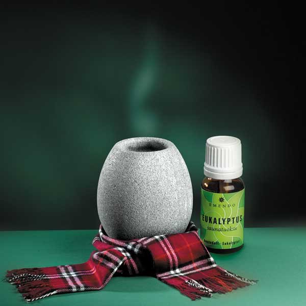 Place the bowl among the sauna stove stones out of the reach of water cast on the stove. It must not touch the heater elements. Fill the bowl with water before you warm the sauna and add a few drops of sauna scent. As the stove warms up, the bowl creates a pleasant scent it the sauna.